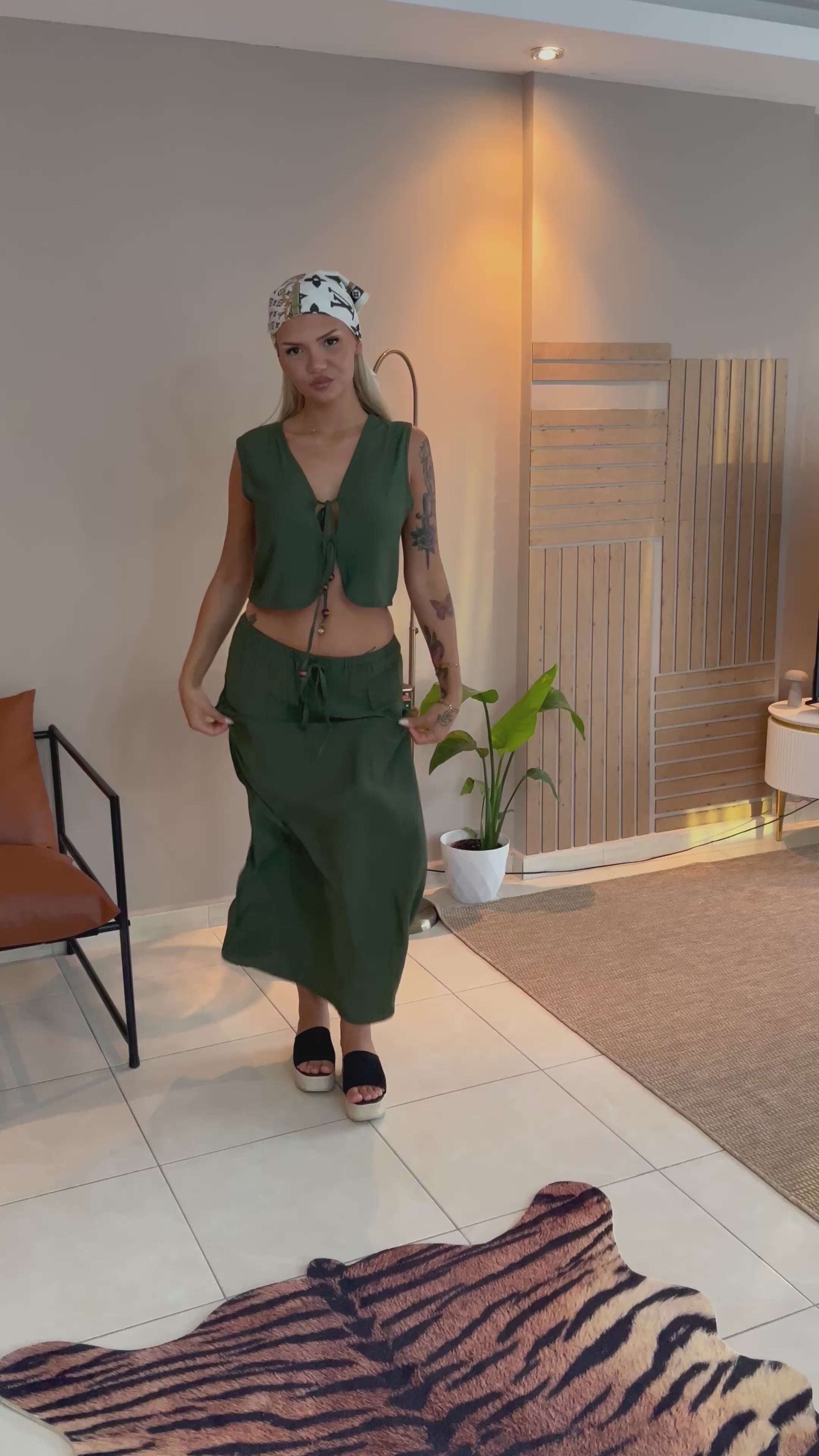 Haki yeşili ikili bağlamalı takım